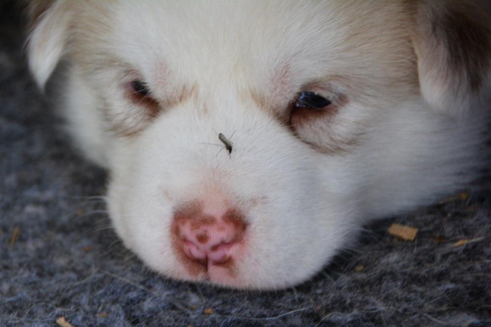 En ting er like sikkert enten en er tobeint eller firbeint, voksen eller valp – her i nabolaget til Femundsmarka er det mygg om sommeren. Alltid. Heldigvis ser valpene og hundene ut til å være mindre plaget med myggen en vi tobeinte.