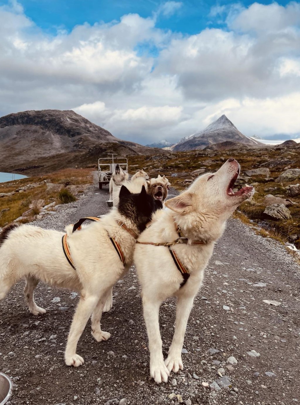Det ble mulighet til turkjøring i litt mer dramatisk landskap enn vi har hjemme, samt god anledning til å trene på forbikjøring og møtesituasjoner med både andre spann og med enkelthunder med sin tobeint på tur.