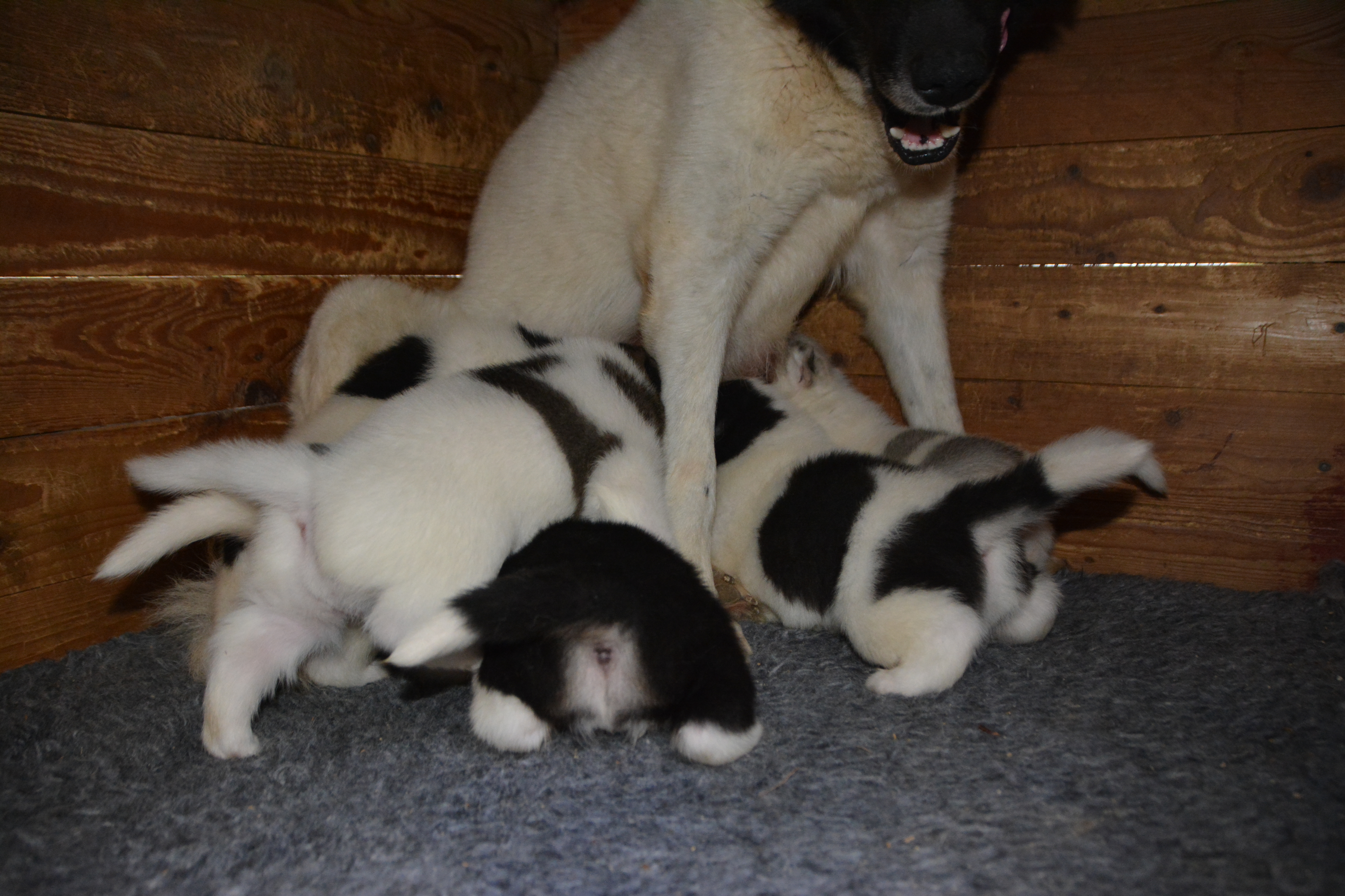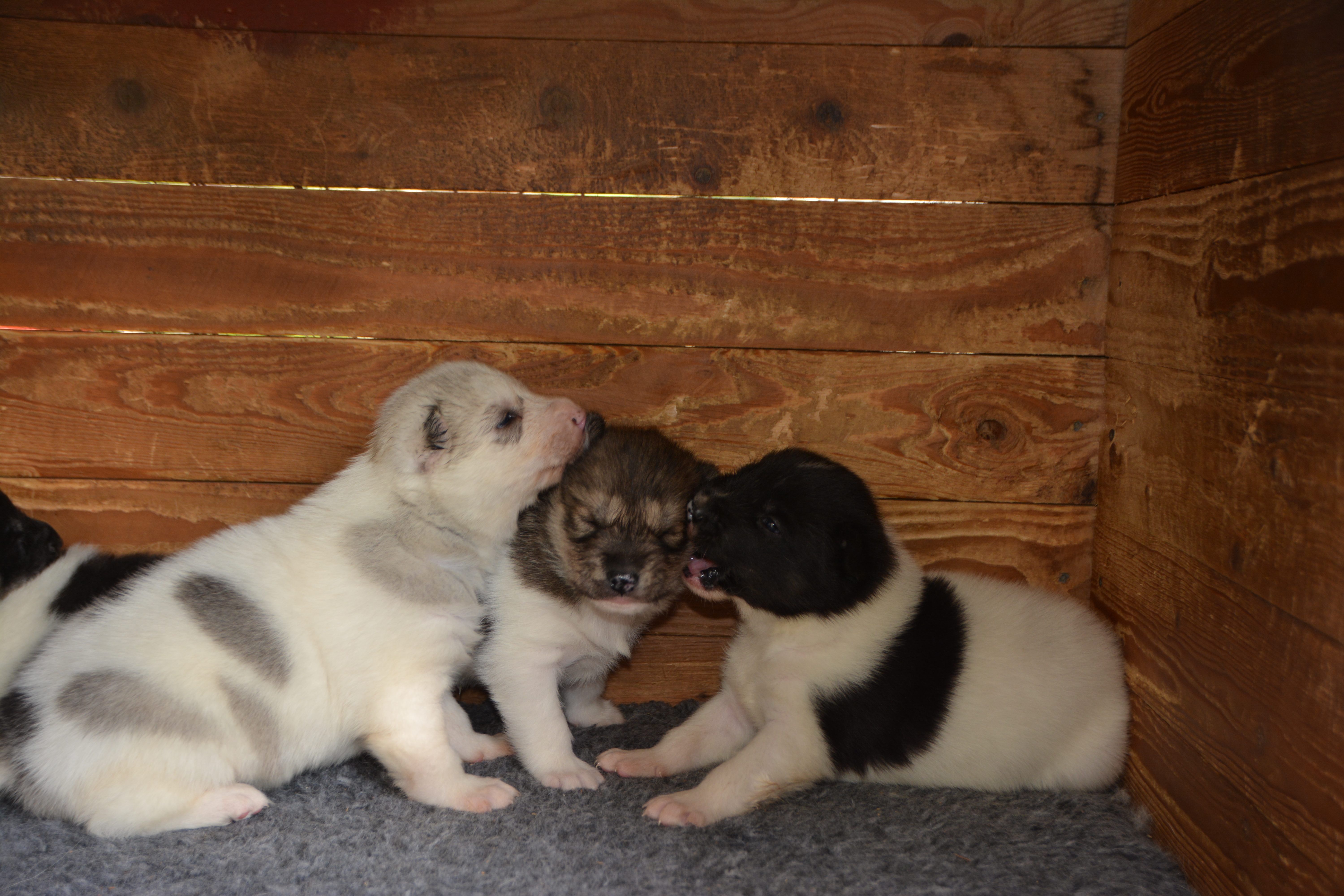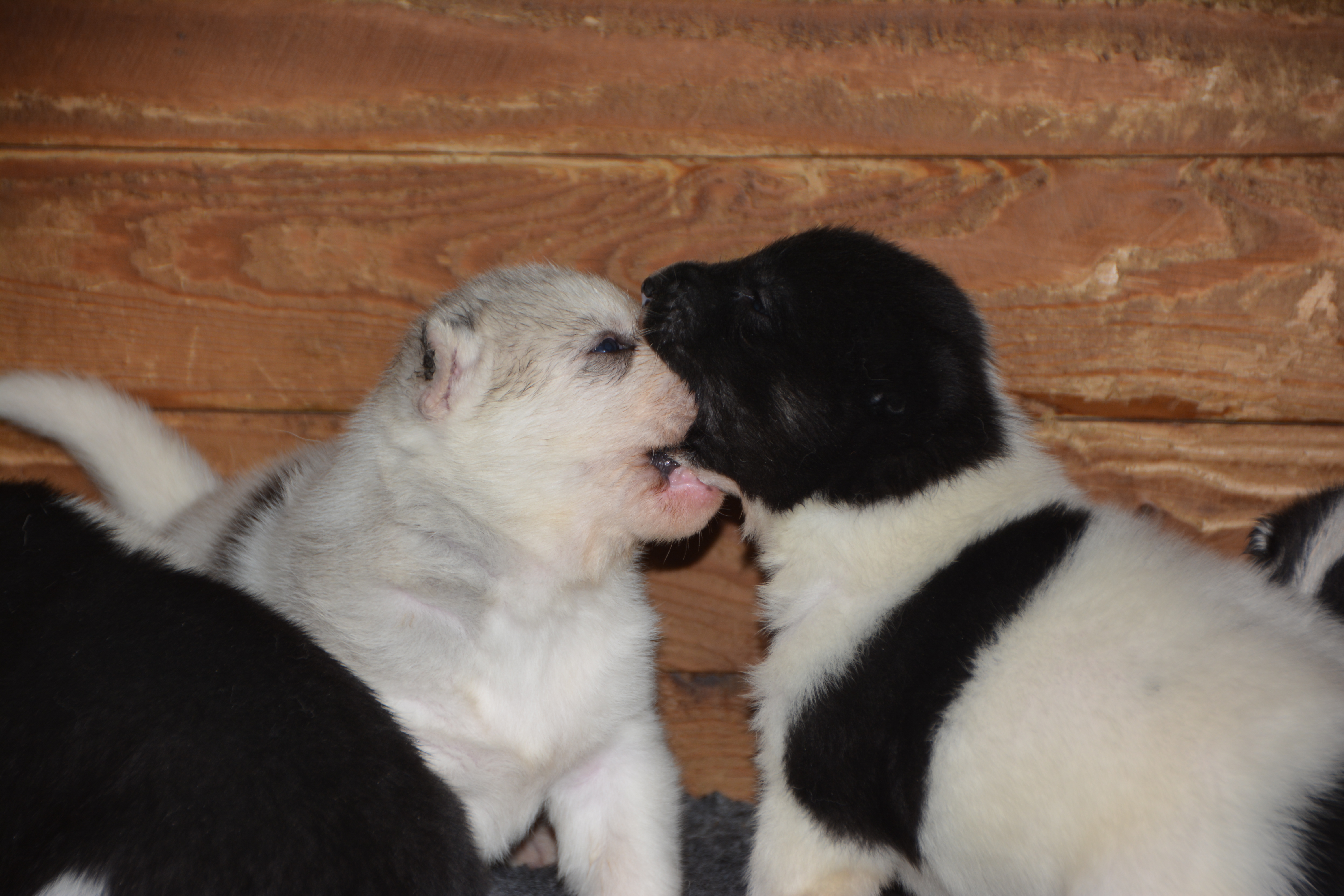 Livet går ellers fortsatt mest med til spising og soving, men nå også litt forsiktig lek valpene i mellom.