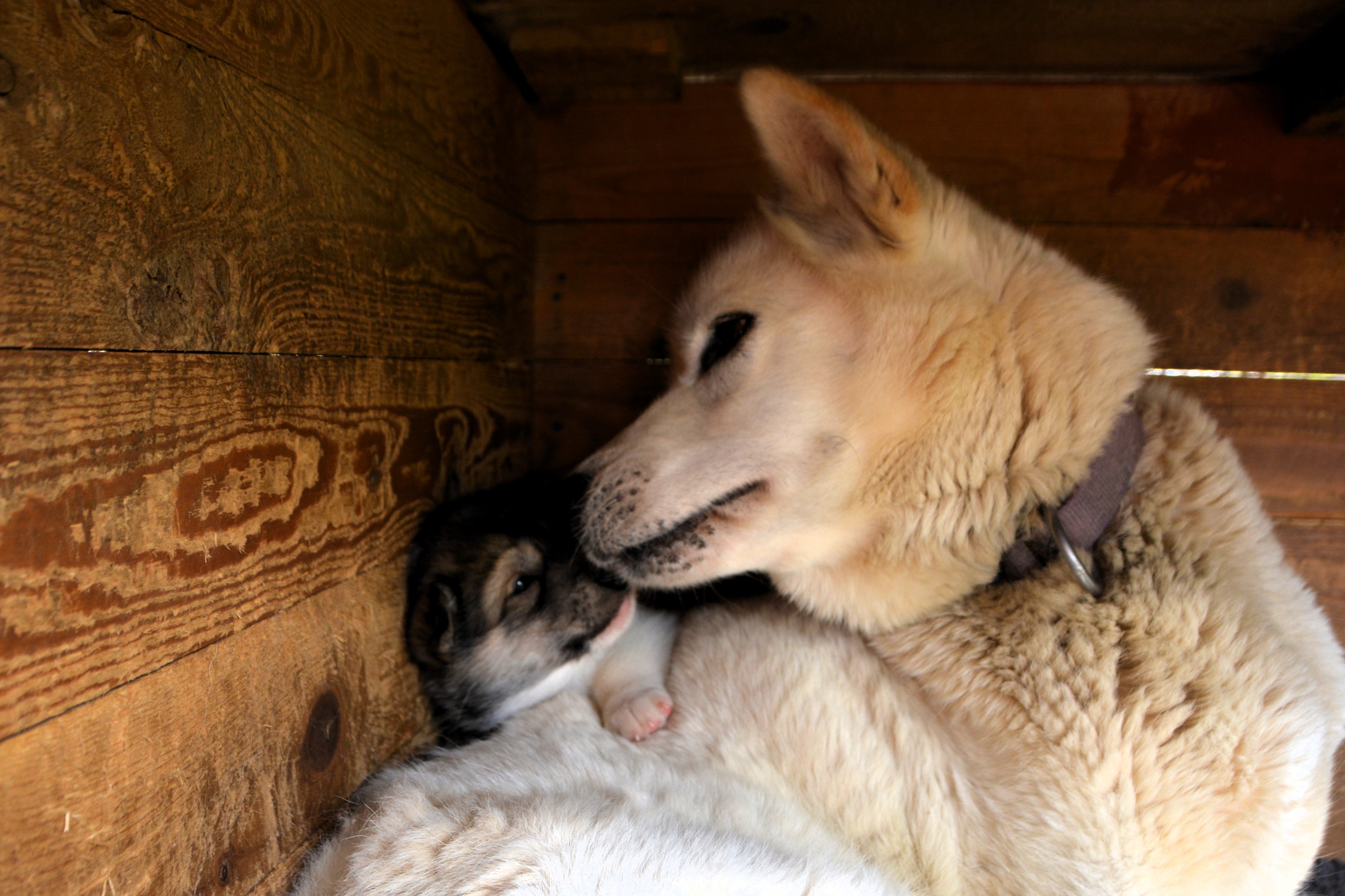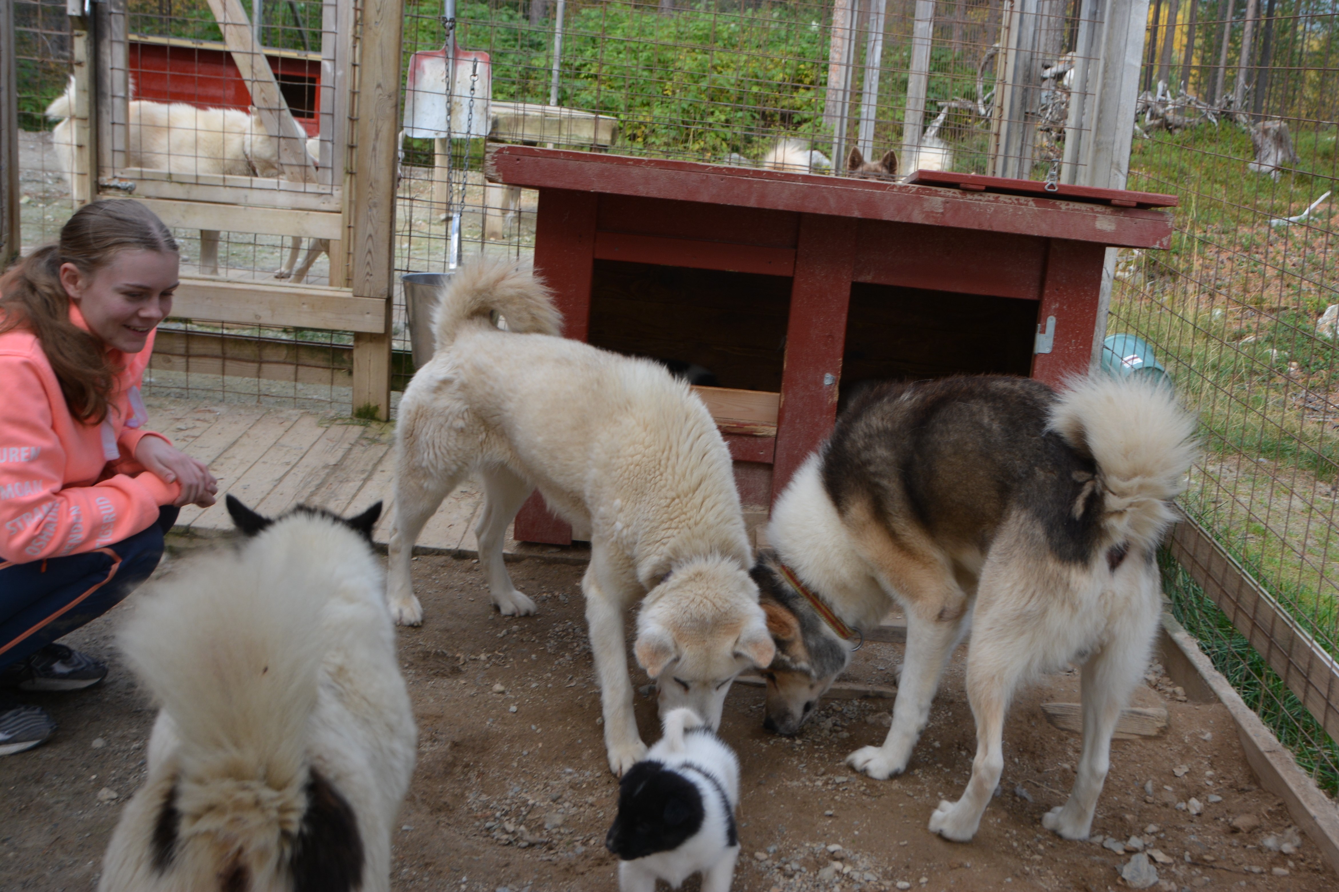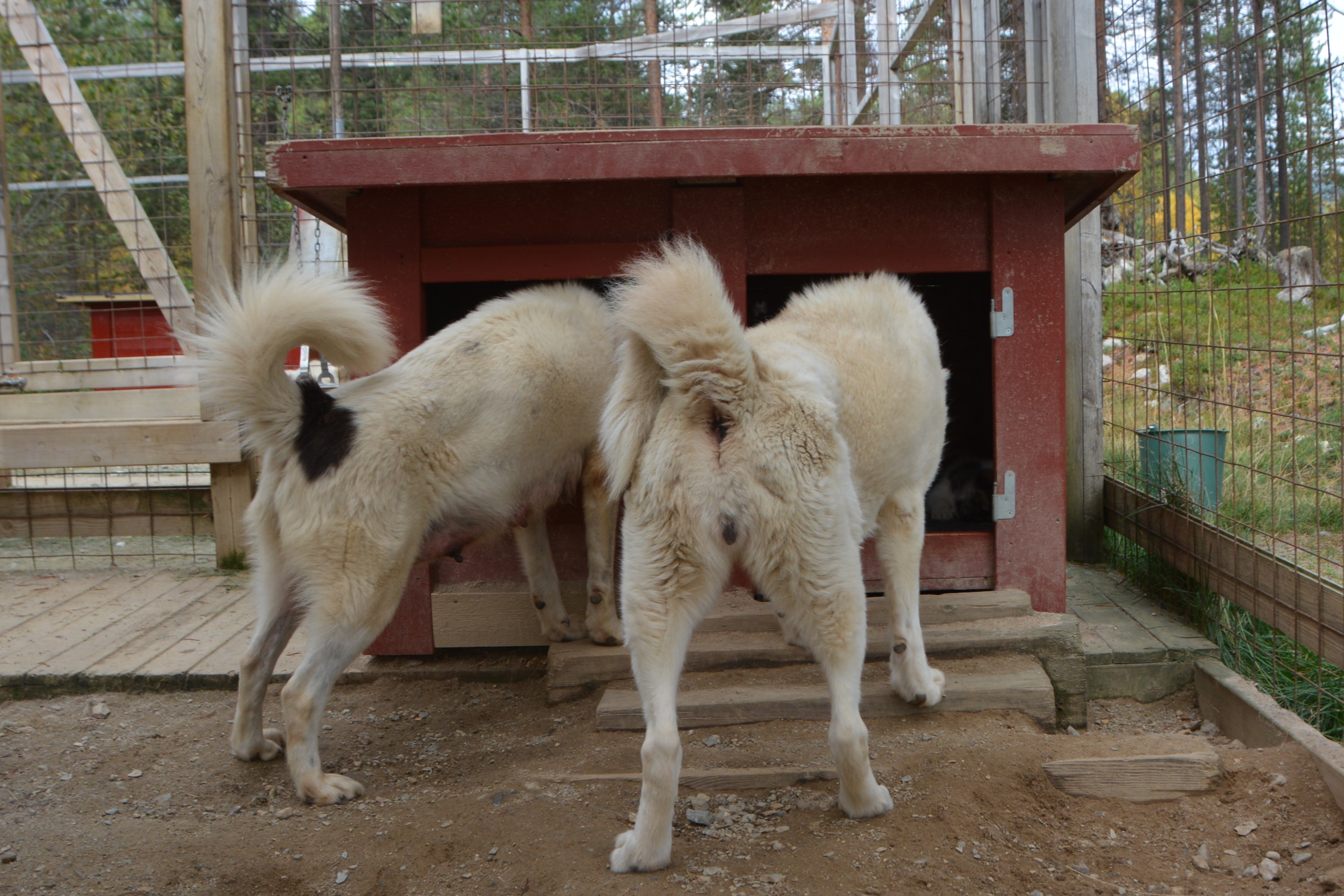 Anori som er valpenes bestemor og hennes kullbror flokklederen Branoq, fikk æren i dag. De er begge ti år gamle, trygge og gode med valper, det er forresten alle de voksne hundene i flokken, men alle kan ikke være først.